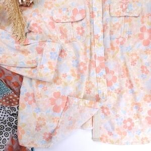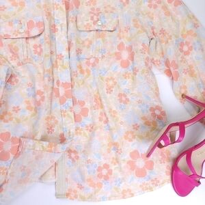 Kate Hill Pastel Floral Button Down TopSz 2x