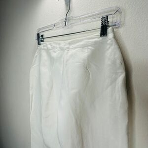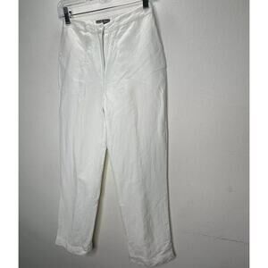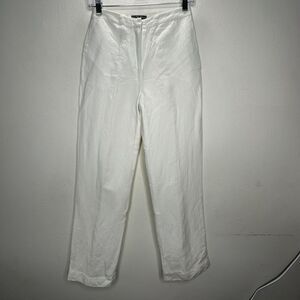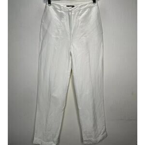Kate Hill Petit White Linen High Rise Flat Front Side Pockets Dress Pants