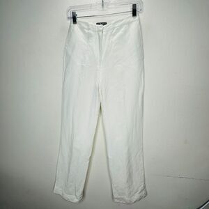 Kate Hill Petit White Linen High-Rise Flat Front Side Pockets Dress Pants 2P