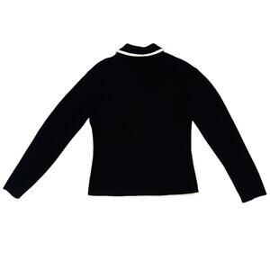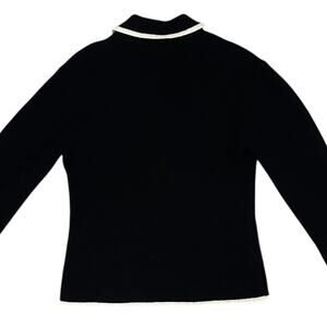 Kate Hill Petite M Black Cream Trim Cardigan Blazer Sweater Lambswool Angora