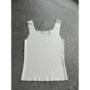 Kate Hill Petite Women's Medium Sleeveless Blouse Cream Knit Minimal