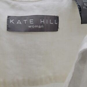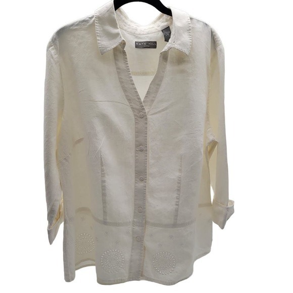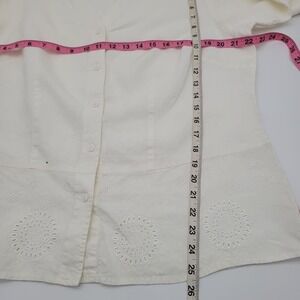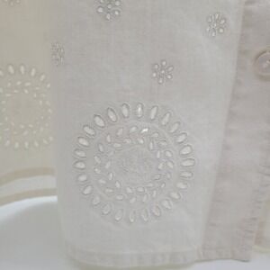Kate Hill Women’s White Linen Eyelet Collared Blouse 16W
