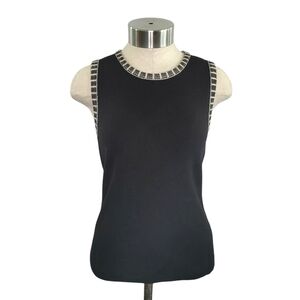 Kate Hill black sleeveless knit top sweater with white crocheted contrast hem in women's size XS.