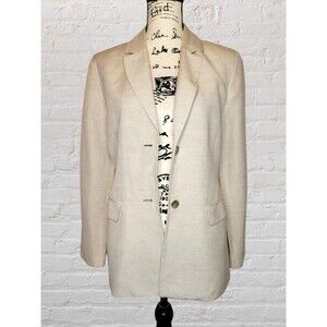Kate Hill for Lord Taylor Linen Blend Blazer Women 8 Cream Pockets Office Career