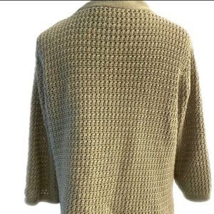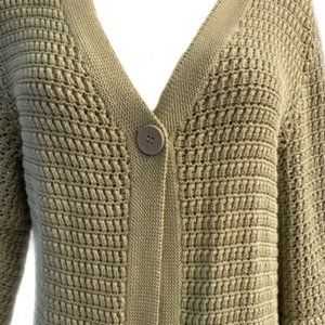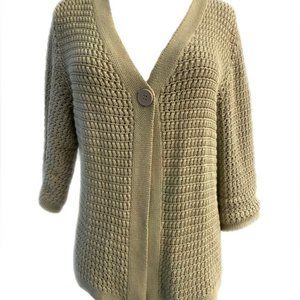 Kate Hill large petite Sage/Taupe One Button 3/4 Sleeve Crochet Cardigan