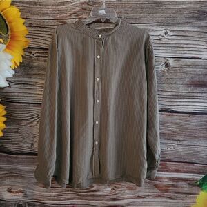"Kate Hill" Woman's long sleeve blouse, size: 3X taupe/white stripped Pre-owned