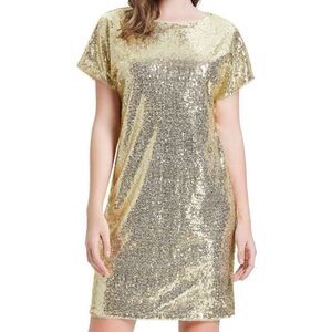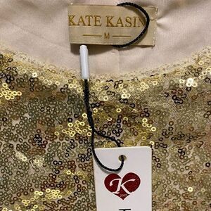 Kate Kasin Allover Gold Sequined Short Sleeve Cocktail Dress NWT | Size Medium