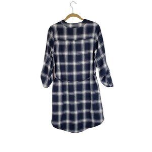 Kate Kasin Flannel Tunic Popover Shirt Dress Blue Gray Plaid Womens Size Small