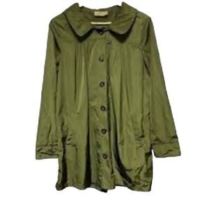 Kate Kasin Olive Green Lightweight Raincoat Jacket with Detachable Hood Size L