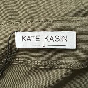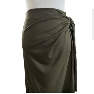 Kate Kasin Olive Green Midi Wrap Skirt Ruched Side Stretchy Slit Lined Size L