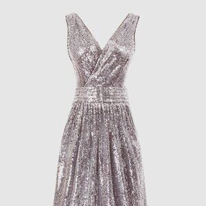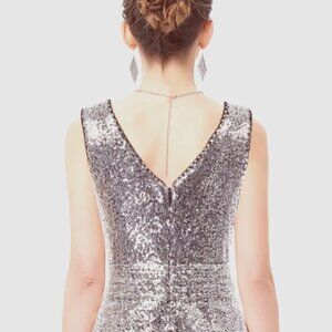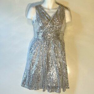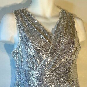 Kate Kasin SZ14 Silver Sequin Grecian Cut Cocktail Dress Prom Formal Wedding