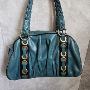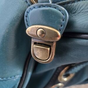 The Kate Landry satchel in a striking blue and gold color combination is a perfect blend of style and functionality. This medium-sized bag features a structured design with gold-tone hardware accents, making it a versatile choice for everyday use. Its soft, pliable material and double handles ensure comfort and ease of carrying, while the elegant finish adds a touch of sophistication to any outfit.