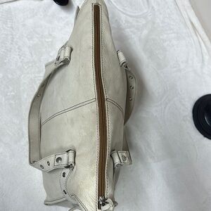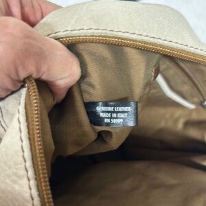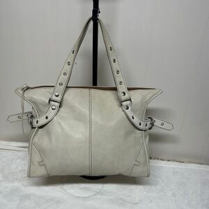 Kate Landry Cream Leather Shoulder Bag with Studded Straps made in Italy