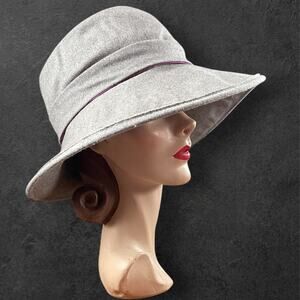 Kate Landry Grey 100% Wool Hat Wide Brim Cloche Purple Satin Ribbon ✨READ✨