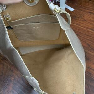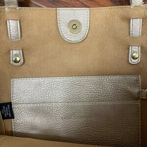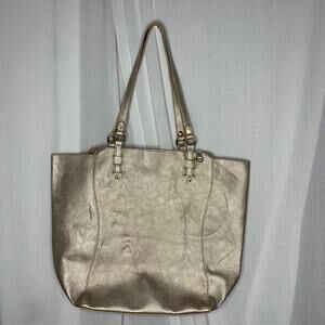 Kate Landry Metallic Silver Non Leather Tote in gently used condition. Has some impressions in the front but otherwise in excellent condition.