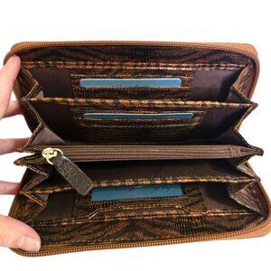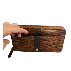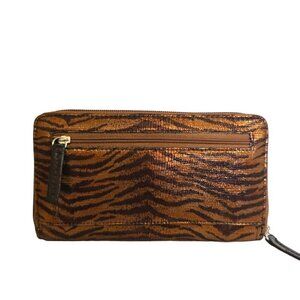 Kate Landry Metallic Tiger Print Zip Around Wallet