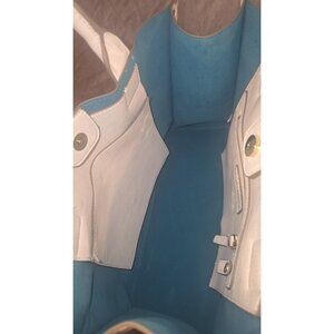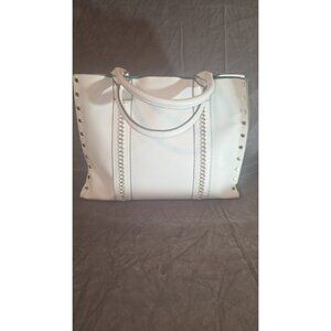 Kate Landry White Faux Pebbled Leather Gold Chain Studded Large Tote Bag. HL8