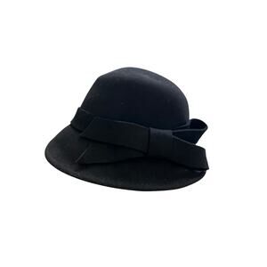 Kate Landry Womans Cloche Hat Black Boho Bow Accent 100% Wool Retro