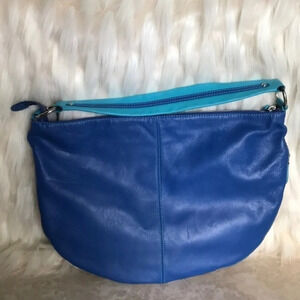 Kate Landry leather bag color blue and light green 12 inches tall and 16 inches length