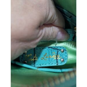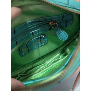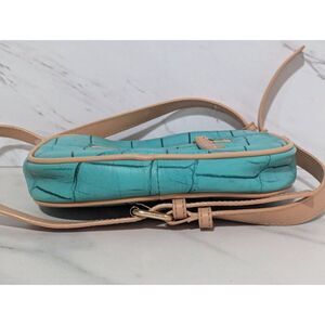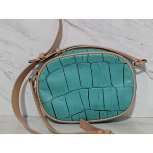 Kate Landry Women's Aqua Croc Print Tan Trim Strap Shoulder Bag