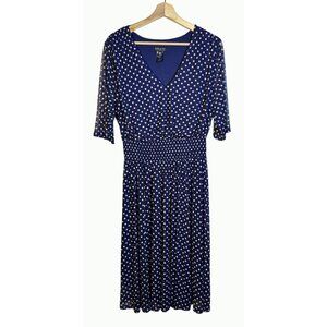 Kate & Lily Blue White Polka Dot V-Neck Midi Dress Elbow-Length Sleeves Size 16