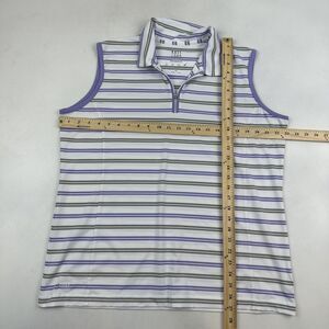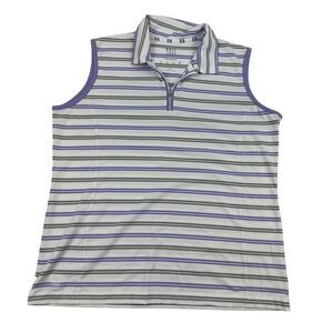 Kate Lord Performance White Purple Striped Tank Polo 1/4 Zip Size XL Stretch