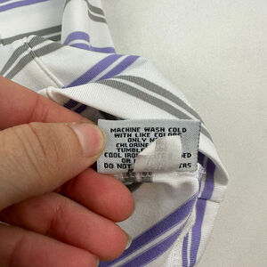 Elevate your wardrobe with this stunning Kate Lord Performance tank polo. The top features a stylish white and purple striped pattern, perfect for any occasion from travel to workwear. The sleeveless design and 1/4 zip closure provide comfort and ease, while the moisture-wicking feature ensures you stay dry throughout the day. Made with a blend of polyester and spandex, this XL size tank polo is machine washable and easy to care for. The garment care is simple, and the season can be worn in summer, fall, and spring. This tank polo is an excellent addition to any woman's wardrobe, and the brand name speaks for itself.
