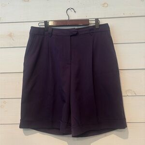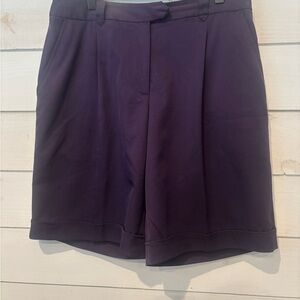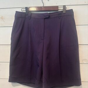 Kate Lord plum/purple Bermuda shorts feature a clean, structured design with a flat front and a mid-thigh length, perfect for a polished, professional look. Crafted from a crisp, structured fabric, they are ideal for business casual wear.