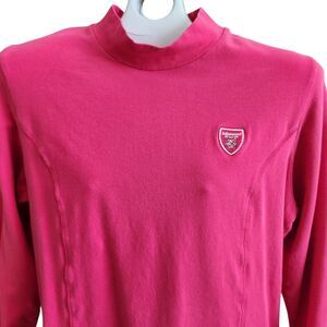 Kate Lord VTG Barbiecore Pink Long Sleeve Top-Crested-Mock Turtle-Y2K Preppy L