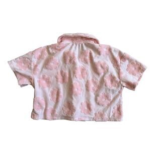 Kate Mack Girls Size 5 Pink Terry Cloth Floral Short Sleeve Button Down Shirt