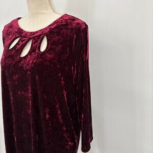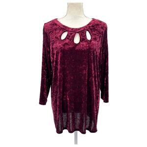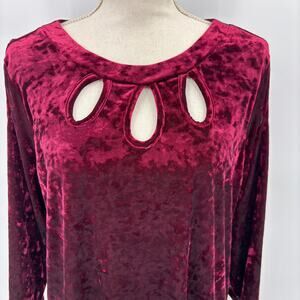 Kate & Mallory 1X Red Velvet Top Keyhole Neckline Cold Shoulder Gothic Elegant