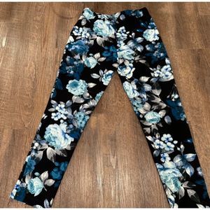 Kate & Mallory Floral Pants Size Medium Pull on Stretch Women’s Blue Black