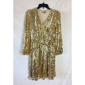 Kate & Mallory Gold Sequin Long Sleeve Tie Waist Dress XS NEW Party Evening