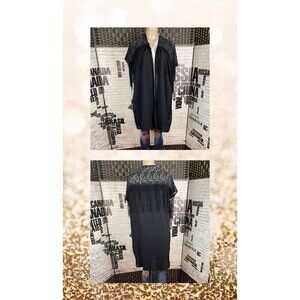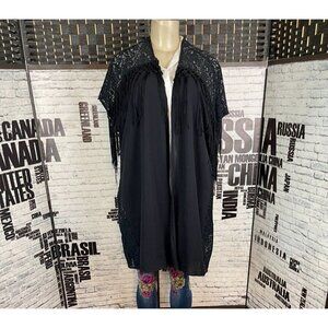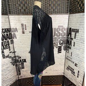 ITEM: Kate & Mallory L Black Lace Fringe Trim Open Front Step-Hem Short Sleeve Topper