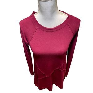 Burgundy in color. Long sleeve. Great for lounging or activities. Top measures 36" in length. Armpit to armpit measures 17". 50% Viscose, 46% Polyester and 4% spandex. Contact me with any questions!