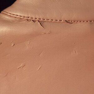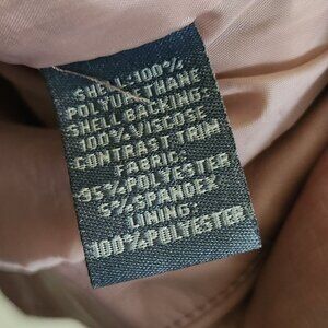 Kate & Mallory Pink Faux Leather Mandarin Collar Zip Jacket Size 1X. Pit to pit 26", shoulder to hem 24", Fully Lined, Full Zip, Moto Zip Sleeve Detail, Mesh Details, Slight spot one sleeve Chipping at back collar as pictured. Good Pre-Owned Condition