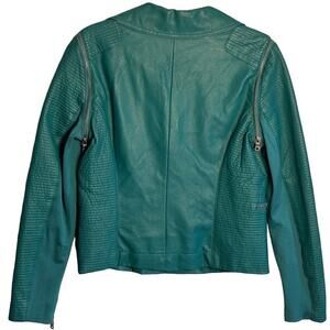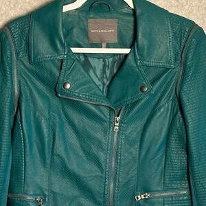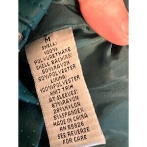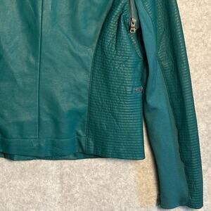 Kate & Mallory Sz M Green Faux Leather Moto Jacket Zip-Off Sleeve biker gorpcore