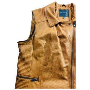 Kate & Mallory Womens Sleeveless Faux Leather Full Zip Vest Jacket Brown Large