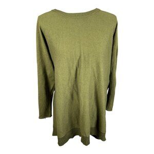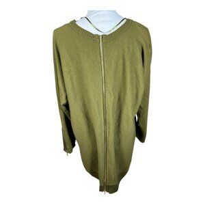 This is a gorgeous green sweater with suede detail on the arms and shoulders, side and back zippers.