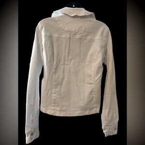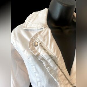 Kate & Mallory white twill ruffle trim fitted moto jacket casual NWOT size S