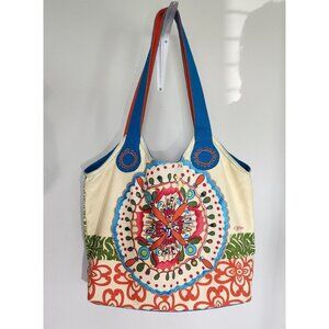Kate McRostie Bohemian Ikat Canvas Tote Bag With Bead Accents & Multiple Pockets