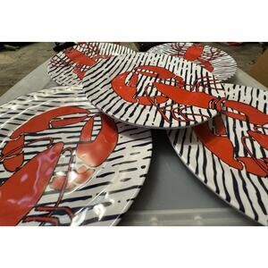 Kate Nelligan Merritt Designs 8.5” Round Plates 5PC Waterline Lobster #20650