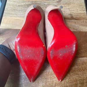 Pair of worn Kate Patent Christian Louboutin shoes in a Nude color, size 6 / 36.5.