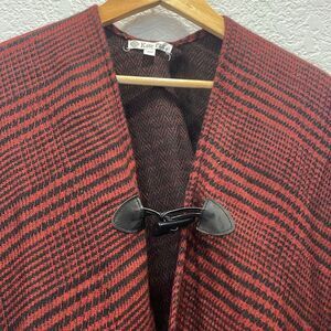 Kate Park Black & Red Plaid Toggle Clasp Closure Shawl One Size