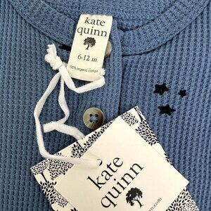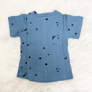 Kate Quinn Baby 6-12 Months Blue Night Stars Moon Short Sleeve Henley Tee Thermal Organic Cotton