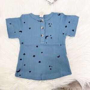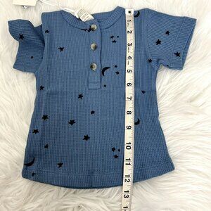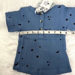Kate Quinn Baby 6-12M Blue Night Stars Moon Short Sleeve Henley Tee Thermal
