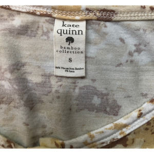 This is a Kate Quinn, Bamboo Collection, Women's Top. It is a button up. It is a women's size small. It is 96% Viscose from Bamboo and 4% Lycra. It is in good used condition.