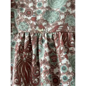 Small stain at waistline. Please see last photo. Blends into the print. Not very noticeable