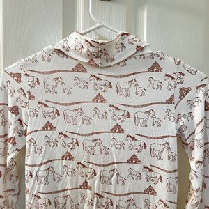 Kate Quinn Bamboo Winter Horse Family Print Turtleneck Long Sleeve Top Size 7. Adorable Winter Horse Family print with family of horses, fence line and barn. Bamboo is so soft. Has been worn, but no issues that I can find. Good Used Condition.