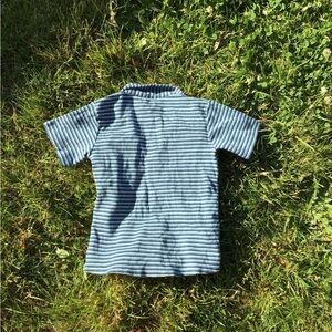Kate Quinn Boys Blue Striped Ribbed Button Down Shirt Patch Pockets Size 5 years